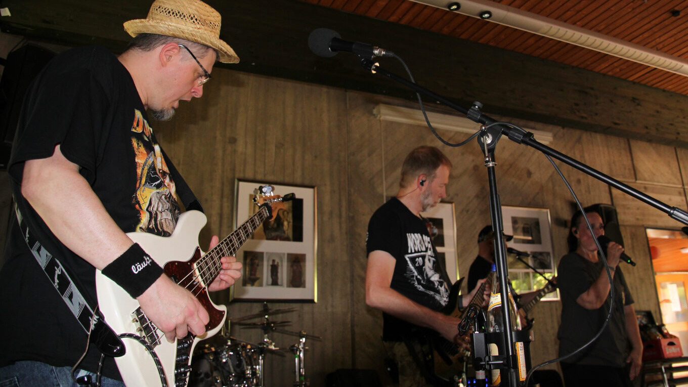 Endlich! - Nach fast fünf Jahren das erste richtige Konzert in unserer Heimatstadt, wenn man von dem OneSong-X-Mas Auftritt im TaM mal absieht. Also am 18. Mai 2024 im Steinbruch-Duisburg, mit neu formiertem LineUp und "full loaded" mit insgesamt 22 Songs plus zwei Zugaben. Ein Gastspiel auf Genre-fremdem Terrain - der Steinbruch-Duisburg ist schon seit langer Zeit über die Grenzen Duisburgs hinaus für seinen musikalischen Schwerpunkt "Jazz & Blues" bekannt, was wohl auch der Grund für den ausbaufähigen Sound-Mix des vom Veranstalters gestellten Personals gewesen sein dürfte ... wäre vielleicht besser gelaufen, hätte man unseren TecRider aufmerksam gelesen! Knapp 100 Rock-Fans erlebten dennoch neben dem bereits bekannten Repertoire unsere erweiterte Setlist mit neuen Coverversionen wie UNDER YOUR SCARS (Godsmack), THE HEART FROM YOUR HATE (Trivium), BASKET CASE (Green Day), THE DEVIL'S BLEEDIN CROWN (Volbeat), SLITHER (Velvet Revolver), ZOMBIE (Bad Wolves), TAINTED LOVE (Marilyn Manson) sowie LUX ÆTERNA (Metallica).